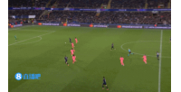 差一点!梅西接布斯克茨过顶球杀入禁区,随后的射门偏出远端立柱