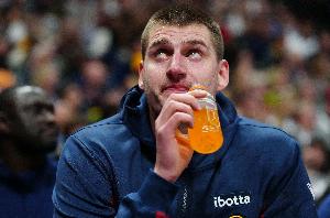 GIF-约基奇场边喝饮料