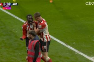 体育资讯11月09日讯 英超第11轮,阿森纳客战桑德兰。补时第94分钟,布罗比侧勾破门,桑德兰2-2阿森纳!